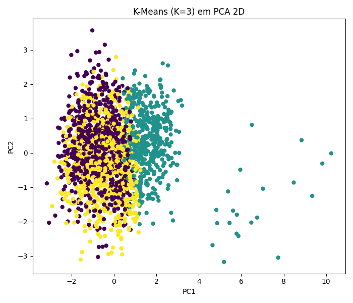 - Testar algoritmos alternativos (DBSCAN, Gaussian Mixture).