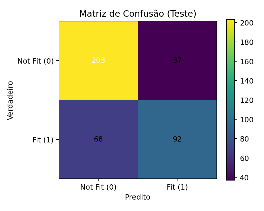 Matriz de confusão (valores observados) - 203 Not Fit corretamente classificados