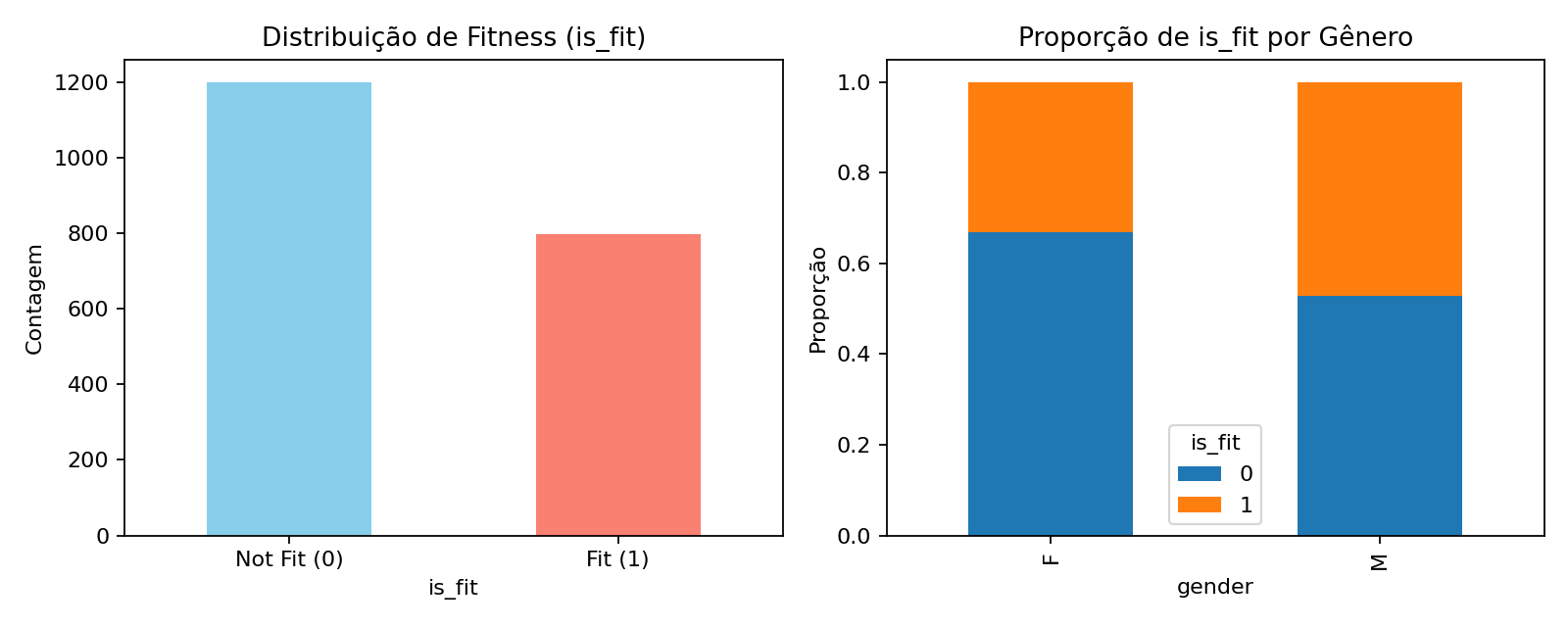 (1 = Fit, 0 = Not Fit). - Observação: leve desbalanceamento (predominância de